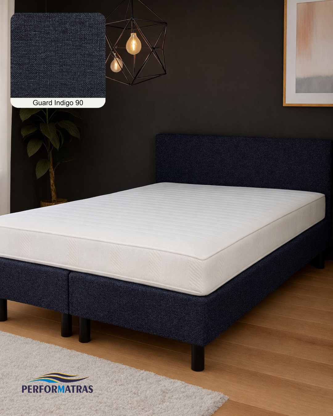 Het onderstel wordt volledig handgemaakt in Nederland met hoogwaardige materialen. Hierdoor ontstaat een solide en duurzame basis die zorgt voor een stabiele ondersteuning en een rustige uitstraling in de slaapkamer.
